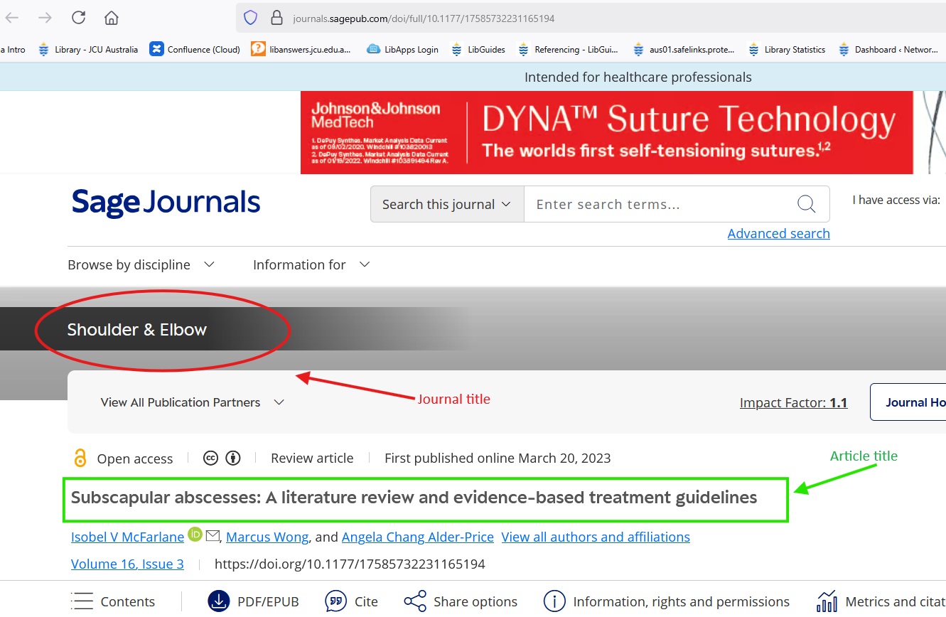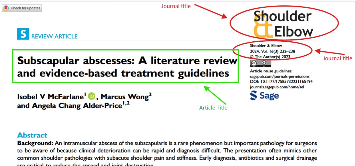 But the general rule of thumb you can use to try to work out which is the title of the journal and which is the title of the article is this: